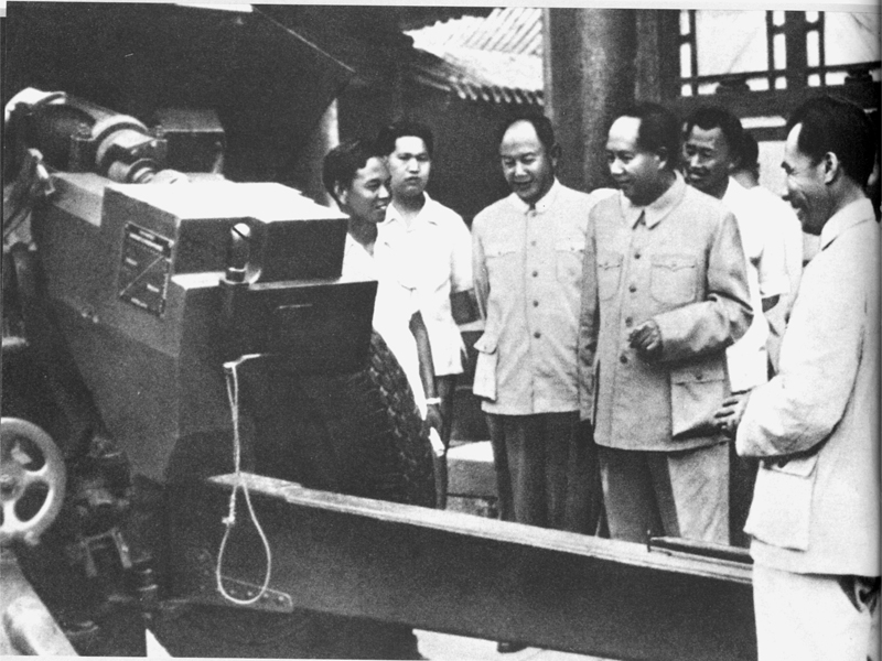 1958年6月6日毛澤東主席在國防工業(yè)匯報展覽會兵器館仔細(xì)觀看54式122毫米榴彈炮