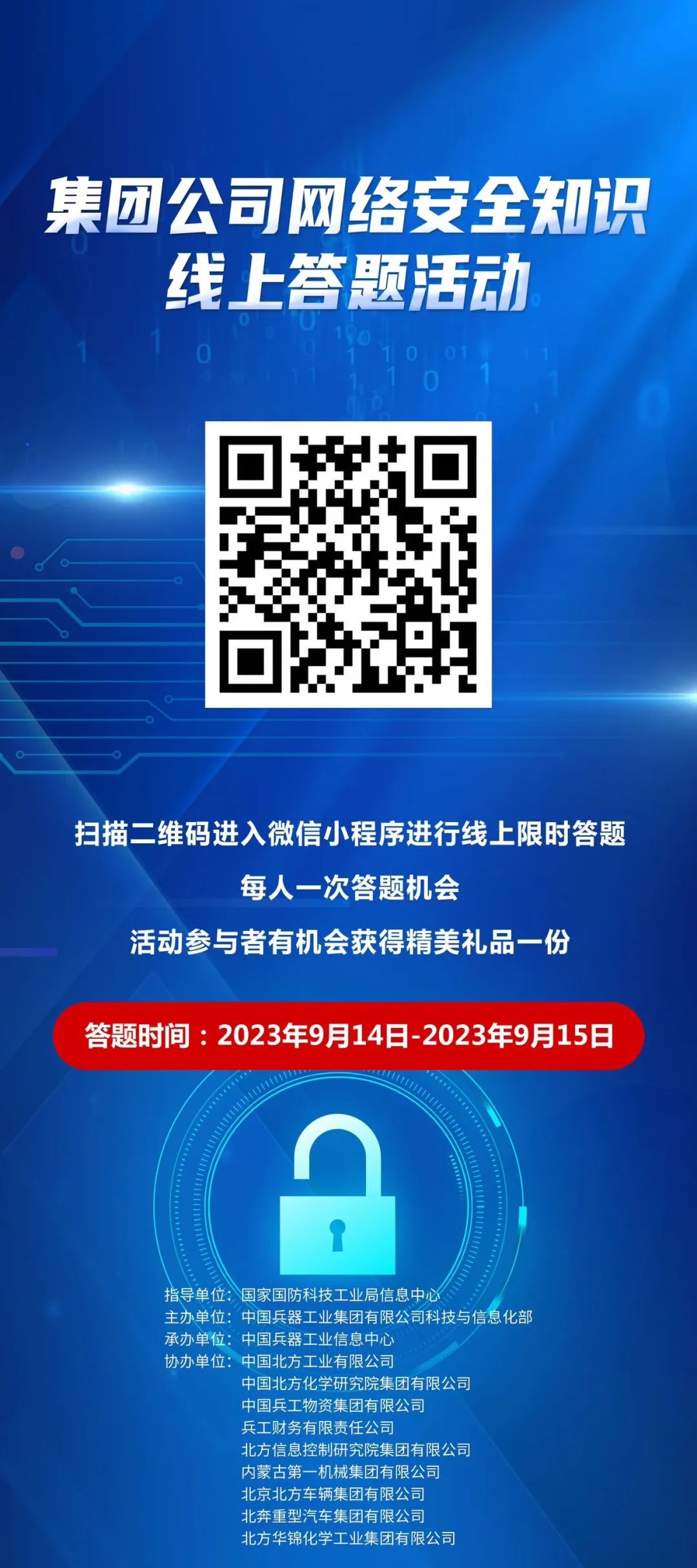集團(tuán)公司網(wǎng)絡(luò)安全宣傳周系列活動將持續(xù)開展,包括線上知識答題、網(wǎng)絡(luò)安全征文等。