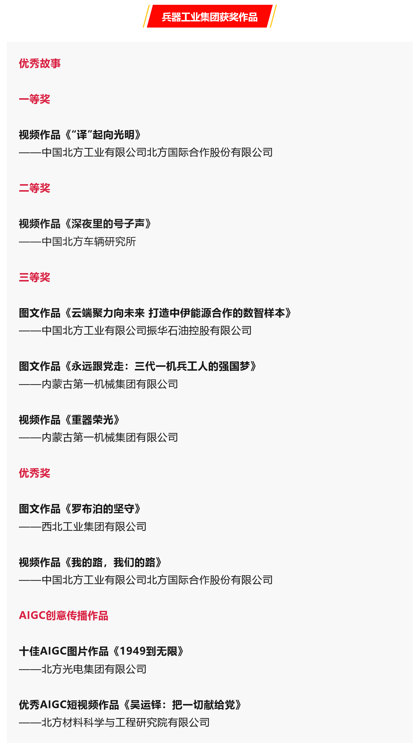 兵器工業集團9件作品在第七屆中央企業優秀故事暨AIGC創意傳播作品發布展示活動中獲獎 |