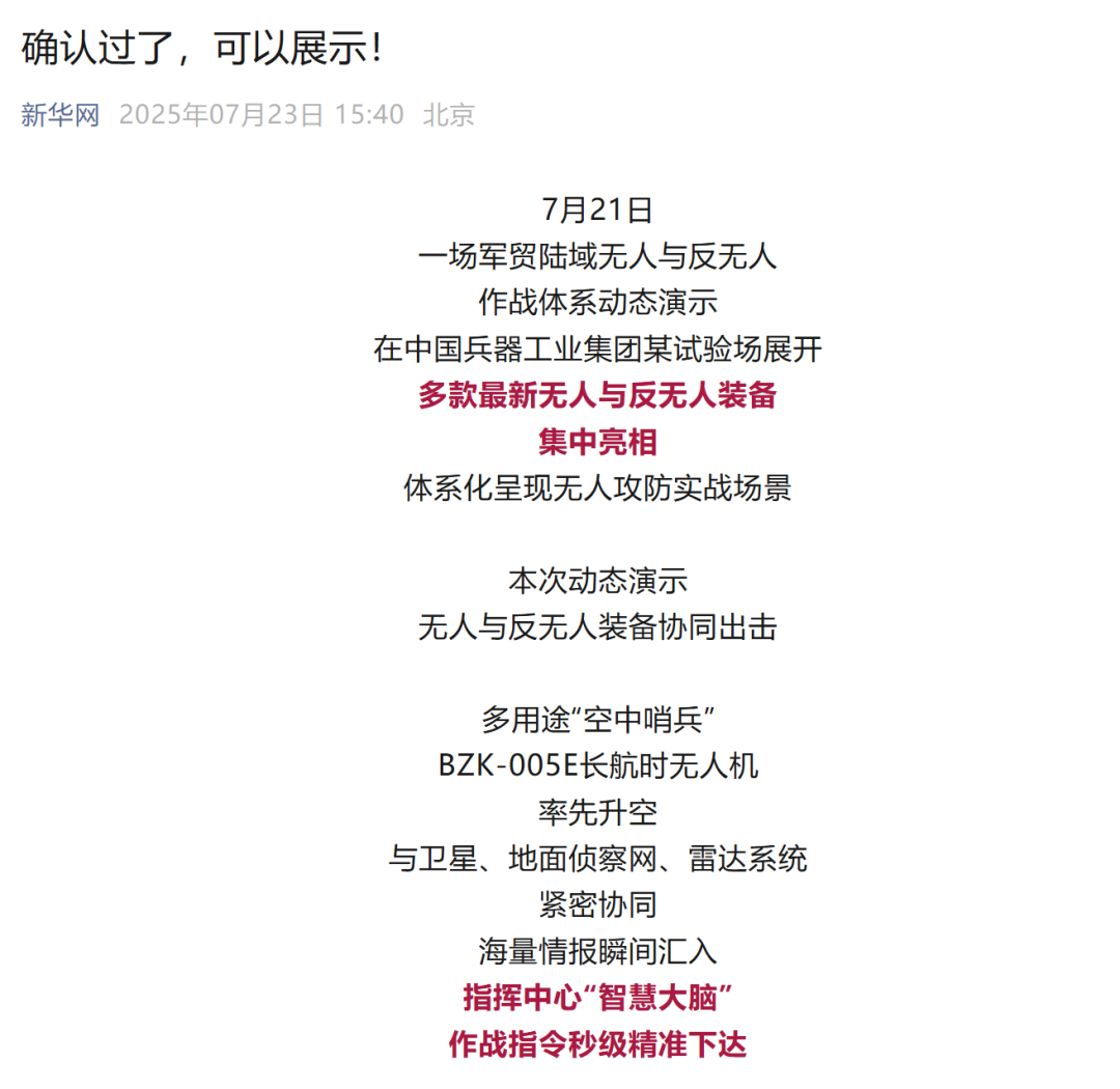 各主流媒體廣泛報(bào)道兵器工業(yè)集團(tuán)軍貿(mào)陸域無人與反無人作戰(zhàn)體系主題日活動(dòng) |