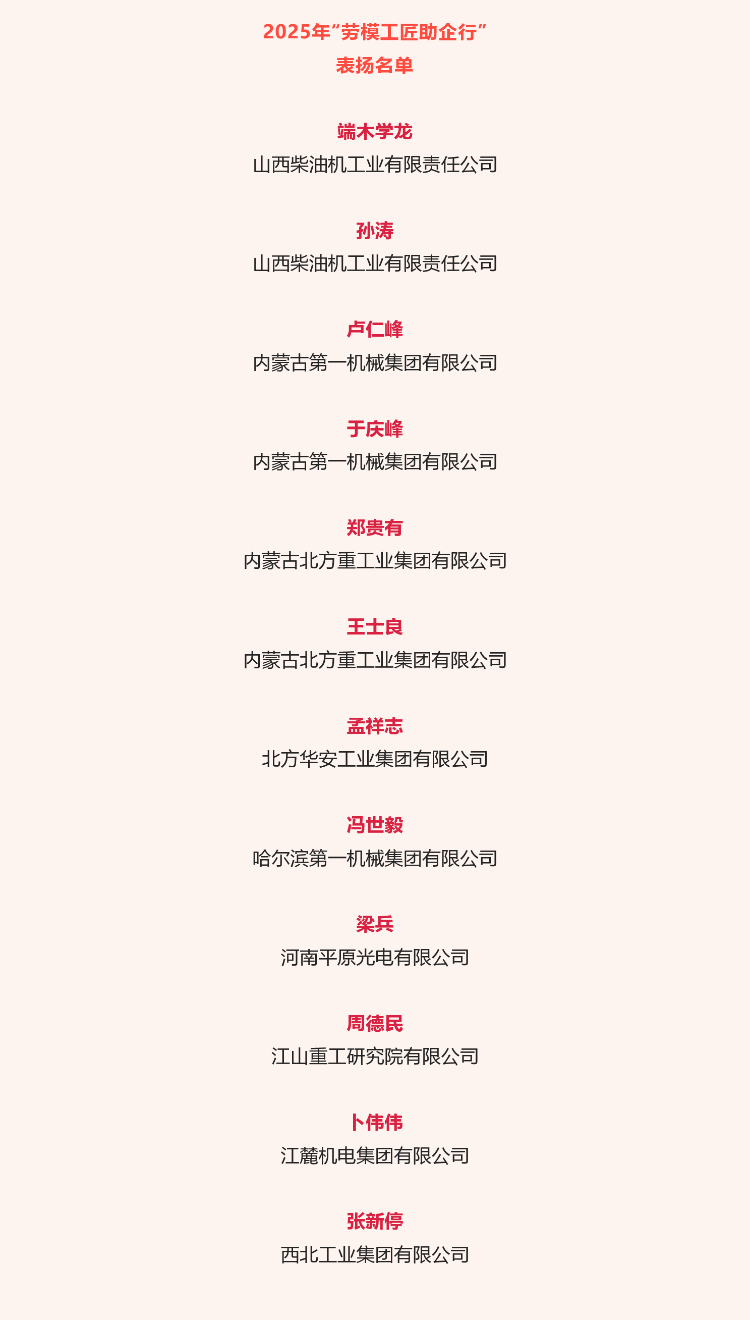 兵器工業集團12名勞模工匠入選“勞模工匠助企行”表揚名單 |